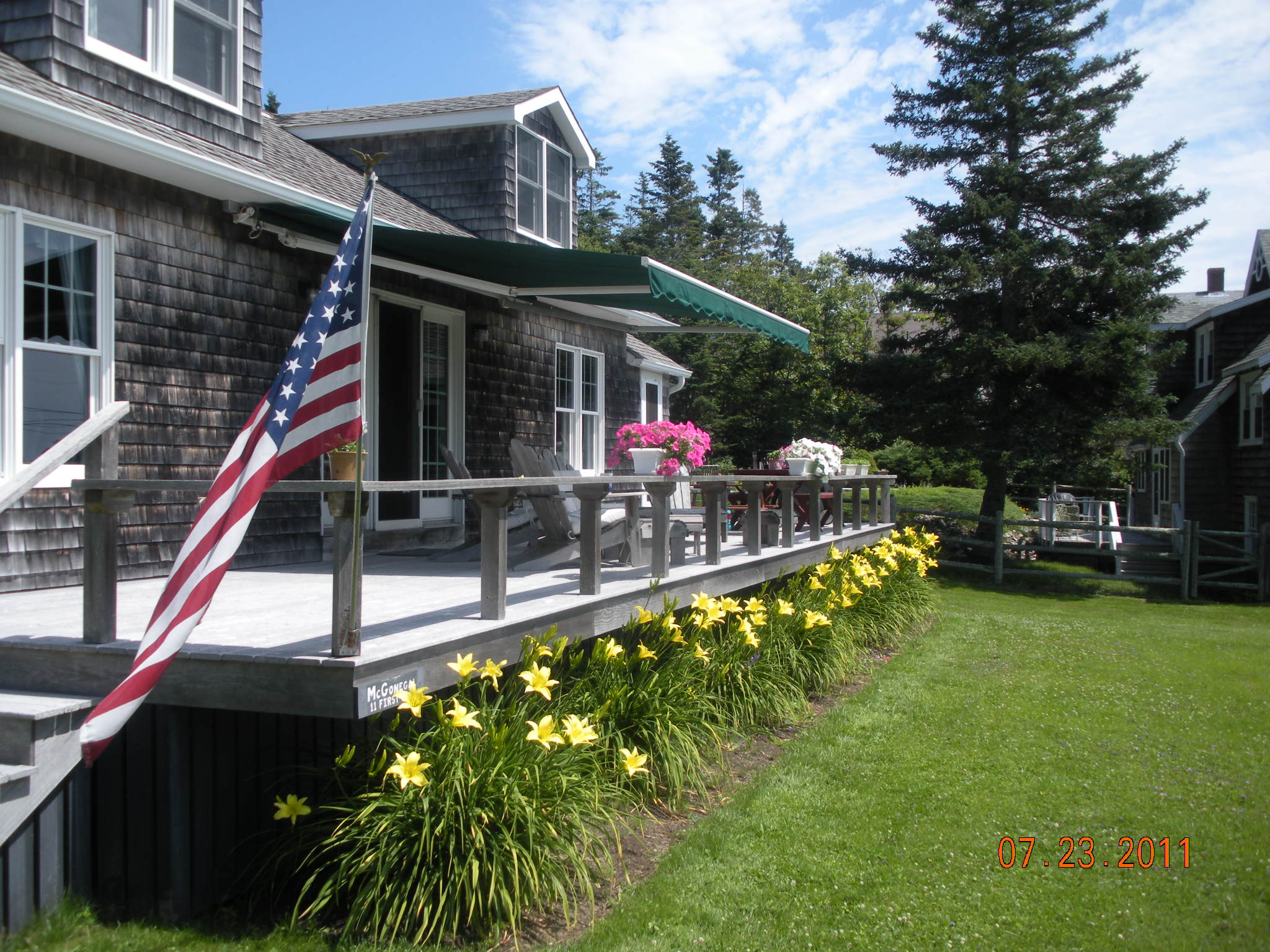 Here's the house in Ocean Point, Maine in 1977. We had a major renovation completed by the summer of 1978 which included a new septic system (note the difference in the front lawn!), closing in the tiny front entry porch, opening up the second floor (twin dormers in the front and a shed dormer across (most of) the back. Perhaps the biggest difference was the deck. This changed the way we spent our time at "Little Sehome", the name given to the cottage by former owners.
